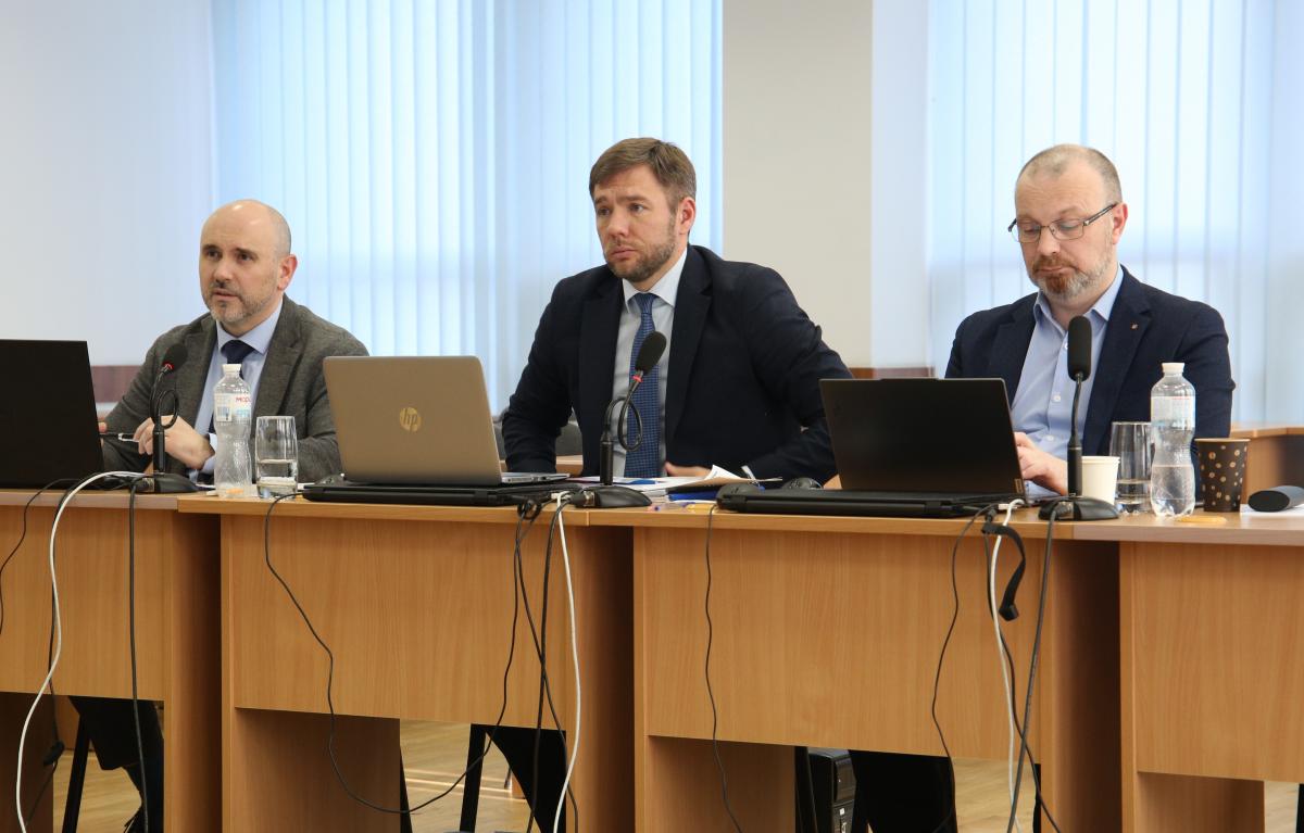 A break was announced in the interview with Ivan Voloshyn, Yuliia Dmytrenko and Yevhen Lohin.