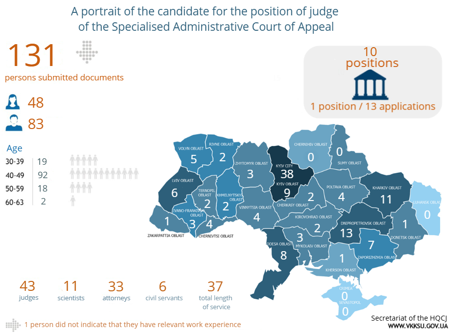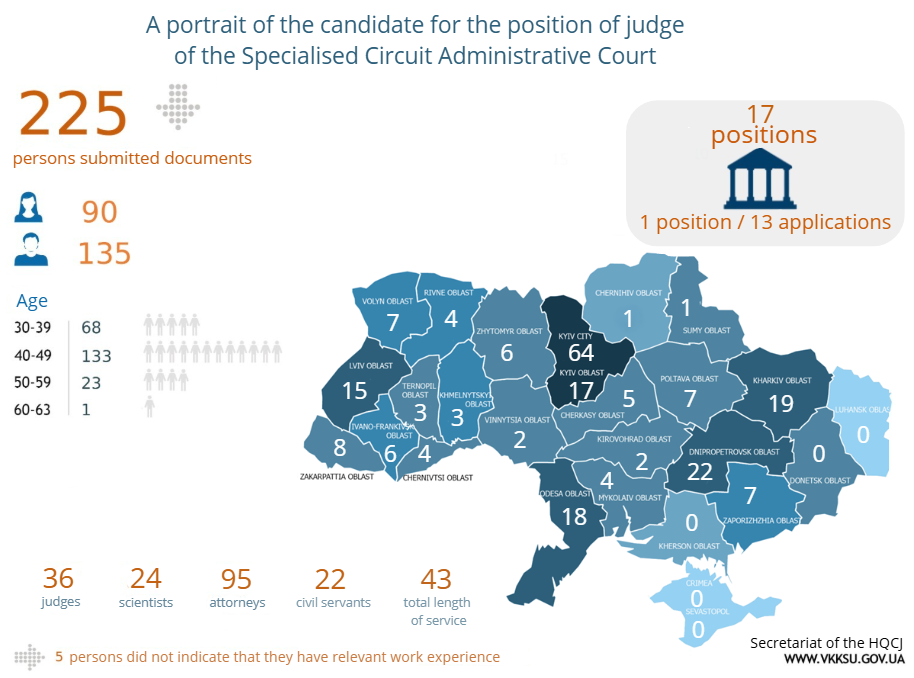 The High Qualification Commission of Judges of Ukraine received 356 applications for participation in competitions for vacant positions of judges in the Specialised Circuit Administrative Court and the Specialised Administrative Court of Appeal. There were