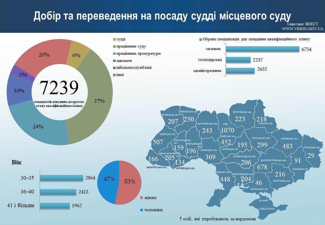 Серед учасників добору переважають жінки: серед суддів їх частка становить 56%, а серед кандидатів – 52%.