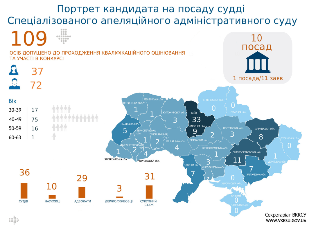 Допущено до проходження кваліфікаційного оцінювання та участі в конкурсі 109 кандидатів на посаду судді СААС. Відмовлено у допуску 22 кандидатам.